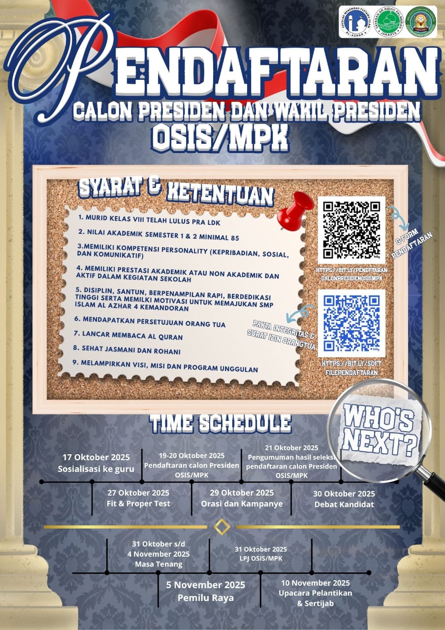 Kini saatnya kita mencari pemimpin terbaik untuk menjadi Presiden dan Wakil Presiden OSIS/MPK Periode 2025–2026 ❗️📣